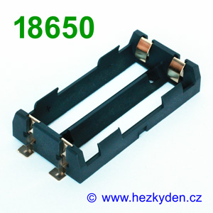 Držák pro baterie 18650 je určen pro 1, 2, 3 nebo 4 články – řazeno vedle sebe. Vývody uzpůsobeny montáži SMD na desku plošných spojů.