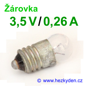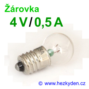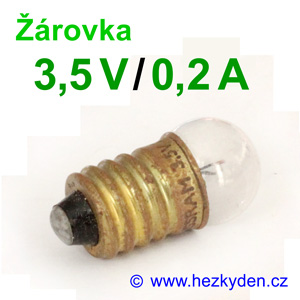 Žárovička se závitem E10 na různé napětí a různý proud. Kulatá skleněná baňka.